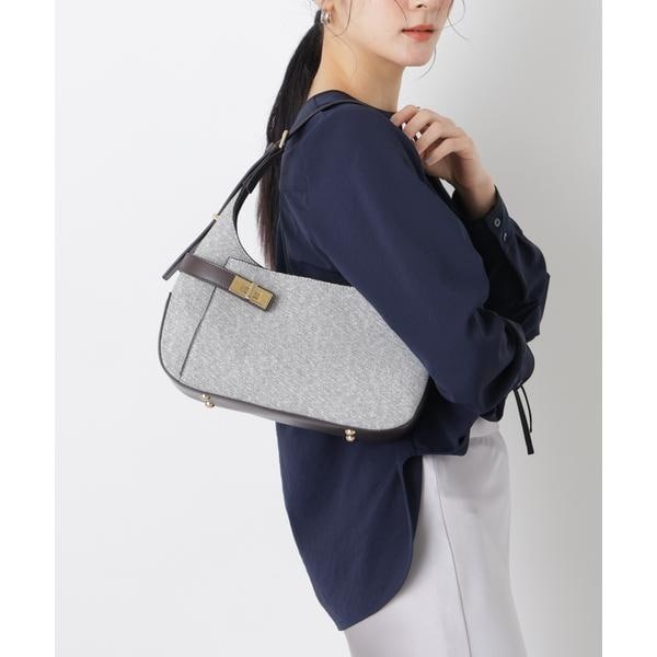キャンバス地と合皮を組み合わせた、上品でカジュアルな印象のワンハンドルバッグ。柔らかな曲線フォルムと、肩にかけやすい程よい太さのハンドルが特徴で、オンスタイルはもちろんセレモニーシーンやデイリーにも幅広く活躍する万能アイテムです。