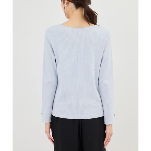 ・一枚着でもシンプルになりすぎないよう、袖口にメタル釦をあしらい、女性らしくきれいめに仕上げている。