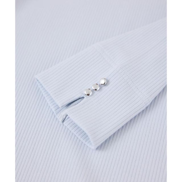 ・ジャケットの中に着やすいよう、身体のラインを拾いすぎない程よいタイトシルエットに設定。