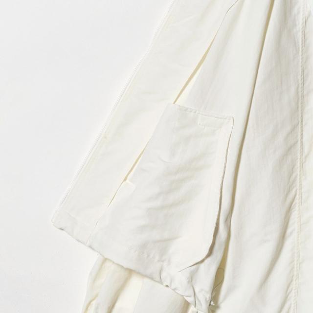 スポーティなナイロンブルゾンにギャザーを施して、女性らしさをプラスしたミックス感のある一着に仕上げました。