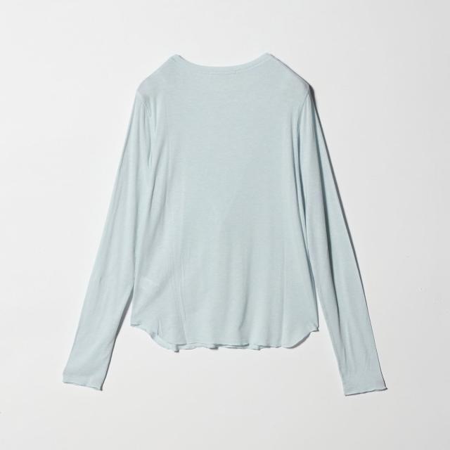 適度な透け感とラウンドヘムが、レイヤード時にもさりげなく存在感を発揮します。