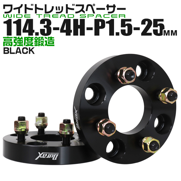 Durax ワイドトレッドスペーサー 2枚セット 25mm PCD114.3 4H P1.5 ブラック ワイトレ ホイール スペーサー ナット アルミ 高強度 軽量 耐腐食 耐摩耗 アルマイト表面処理 ワイドスペーサー 車 タイヤ 4ホール 4穴 人気 おすすめ 送料無料