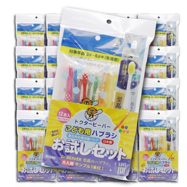 こども用ハブラシ 子供用 3才〜6才 ふつう 12本入 ×20袋 + 歯科医推奨 至高のハブラシ 大人用 ふつう 20本 お試しセット 日本製