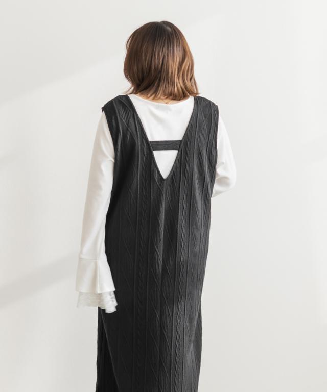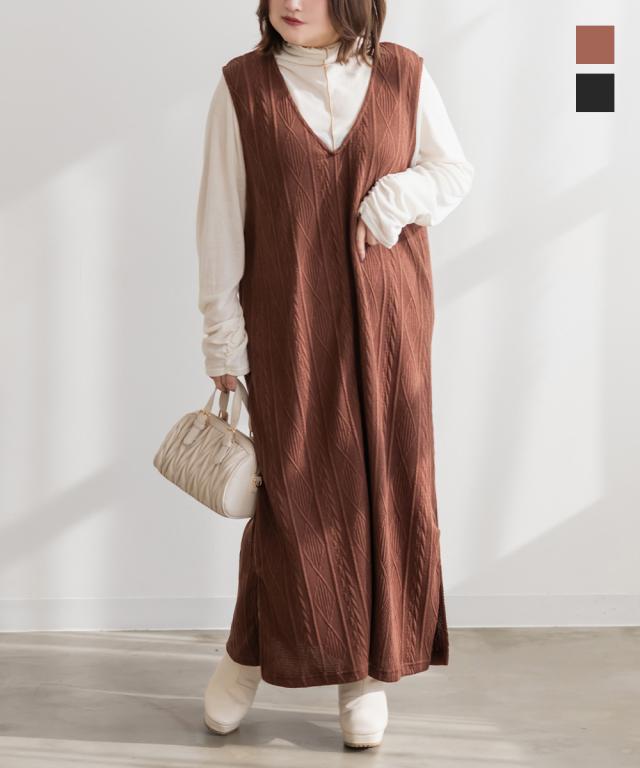 大きいサイズ/レディース/3L/4L/5L/ケーブルふくれジャガードジャンスカワンピース