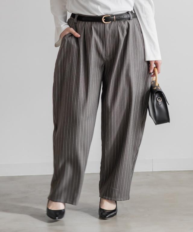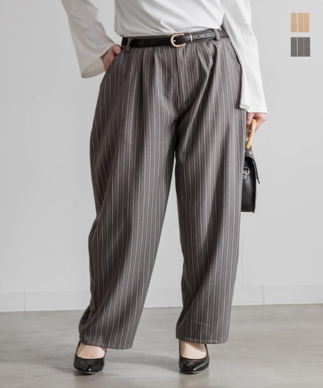 大きいサイズ/レディース/3L/4L/ストライプツータックパンツ
