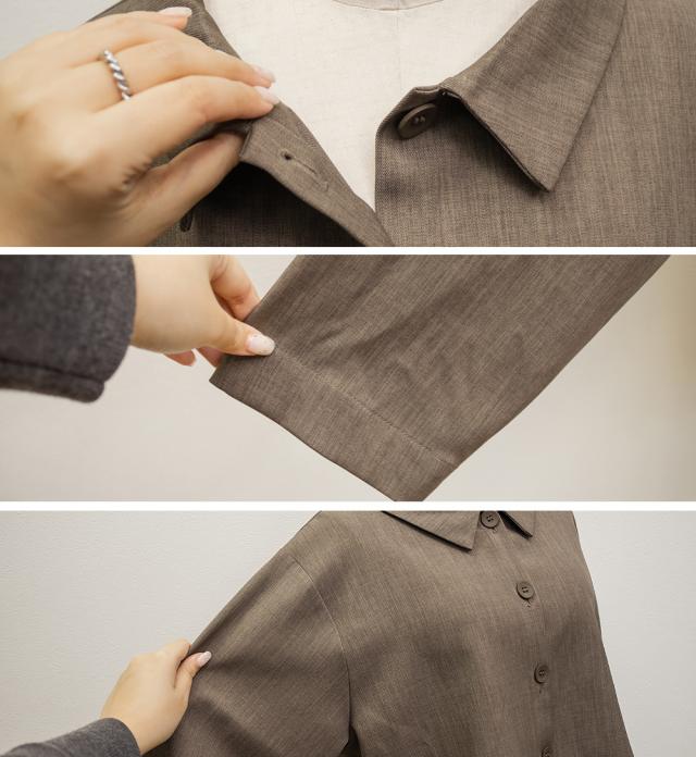 | 3Lを着てちょうどいい着心地で重ね着しても問題なく着れました。軽めのアウターとしてもシャツ風に着てトップスとしても活躍する1枚です!長いシーズン着回ししていただけます♪上品な生地感で大人カジュアルにスタイリングできます!程よく短丈なのでバランス良く見えるのも嬉しいです!お同じ生地のワンピースを合わせてセットアップできても可愛いです◎フェミニンなスカートとも相性良く、パンツと合わせてアクティブに着ることもできるので、色々なシーンで活躍できる1枚です! |