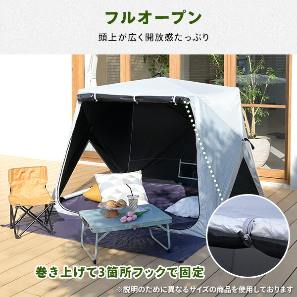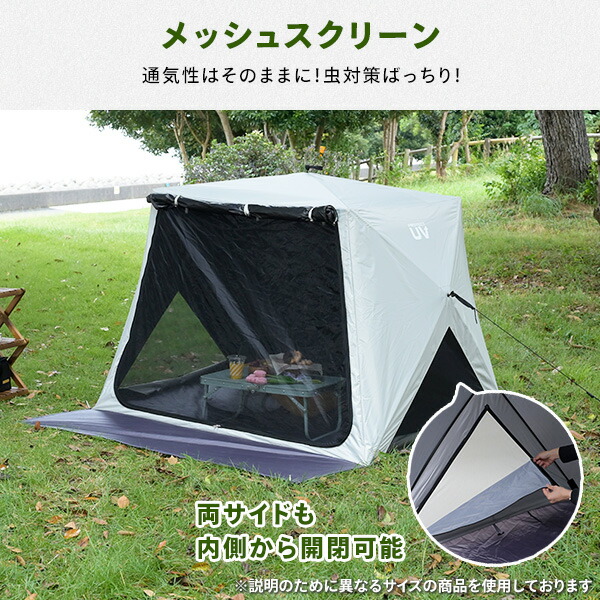 | 商品説明 | ●意匠登録済 ●実用新案登録済 ※本製品の類似品・模倣品の販売は法律により禁止されております。類似品・模倣品を発見した場合は法的処置を取らせていただきます。 ●今までのポップアップテントとは違って設営、撤収がさらに簡単になったパッとサッとテント ●遮蔽率:99.9% ●遮光率:99.99% ●フルクローズ機能で着替えもできる ●メッシュ機能で虫を寄せ付けずに風通しできます ●棒状にコンパクト収納されるので持ち運びがラクラク ●両サイドにもメッシュ機能で風通しが良い ●両面ファスナーで内側からも開閉可能 ●独立フロントシート ●便利なポケット付きでスマホやタオルの収納に! ●付属品:ペグ11本、ガイドロープ5本、キャリーバッグ ●折りたたみ時サイズ:幅12×奥行13×長さ94cm |