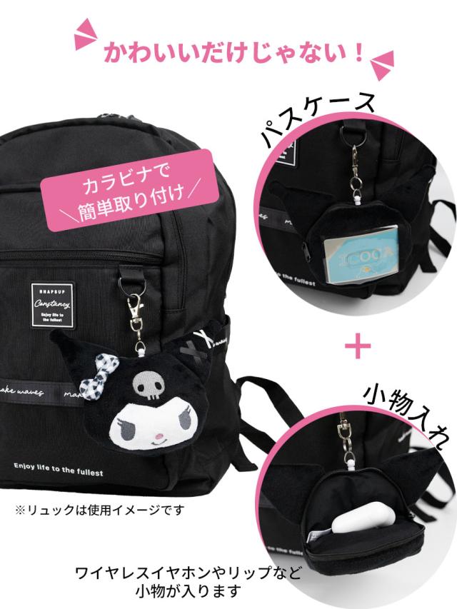 サンリオ人気キャラクター、マイメロディとクロミの顔のカラビナでつけるパスケースです。