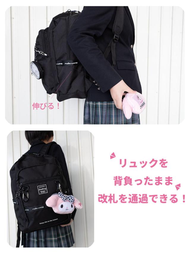 リール式になっているのでバッグに付けた状態で改札で伸ばしてタッチが可能です。約50cm伸ばすことができます。※引っ張りすぎにご注意ください。