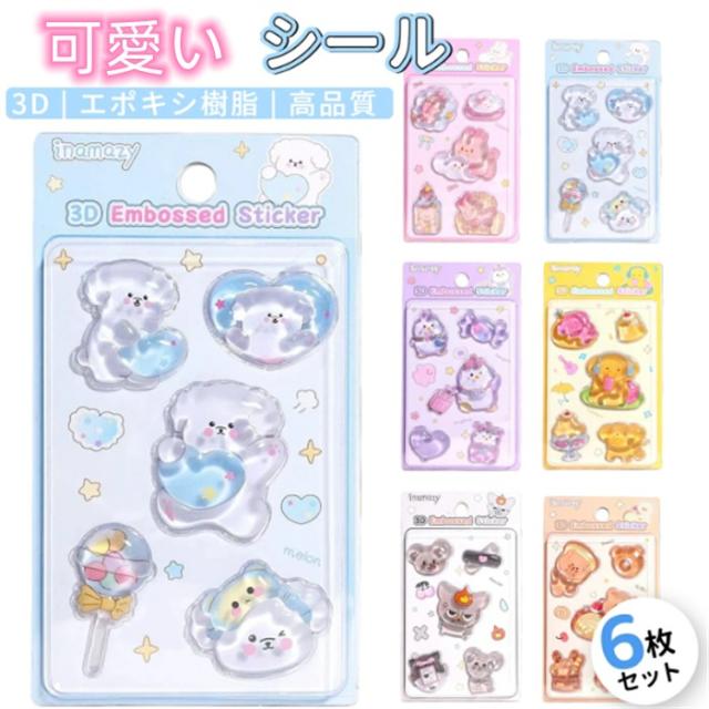 【送料無料】新発売!3Dシール キャラクター ボンボンシール ぷくぷくシール 6枚セット 3D 立体シール 3dシール ぷっくり つやつや 女の子 平成女子 シール帳 シール 交換 かわいい 動物 キラキラ ぷくぷく