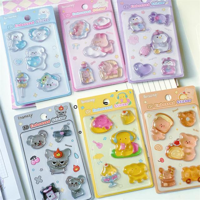 新発売!3Dシール キャラクター ボンボンシール ぷくぷくシール 6枚セット 3D 立体シール 3dシール ぷっくり つやつや 女の子 平成女子 シール帳 シール 交換 かわいい 動物 キラキラ ぷくぷく