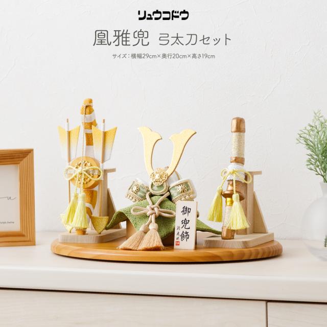 五月人形 コンパクト おしゃれ 兜飾り モダン インテリア リュウコドウ 平飾り 凰雅兜 弓太刀セット 初節句 男の子 子供の日 兜 お祝い ギフト プレゼント かぶと かっこいい 小さい ちりめん