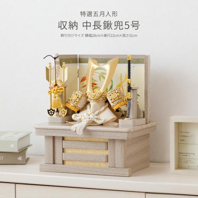 五月人形 コンパクト おしゃれ 兜飾り 収納飾り 5月人形 最新 今どき モダン インテリア 兜 収納 中鍬兜5号 初節句 お祝 端午の節句 こどもの日 子供の日 ギフト プレゼント かぶと 人気 本格派