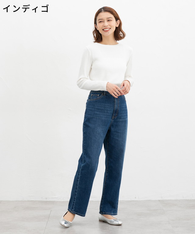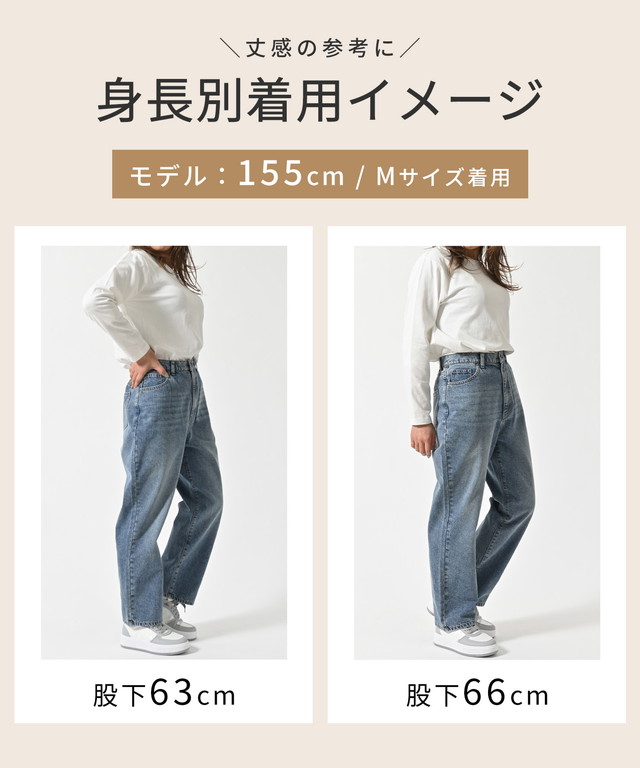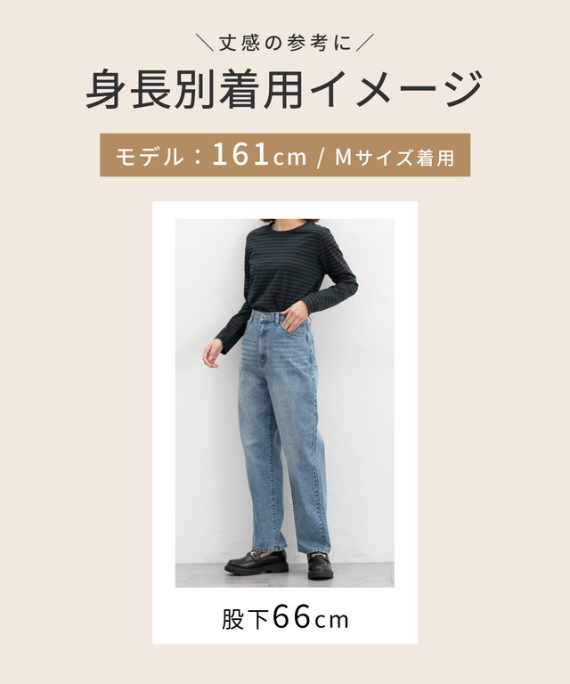 太すぎないシルエットのデニムストレート、股下63cmタイプ。