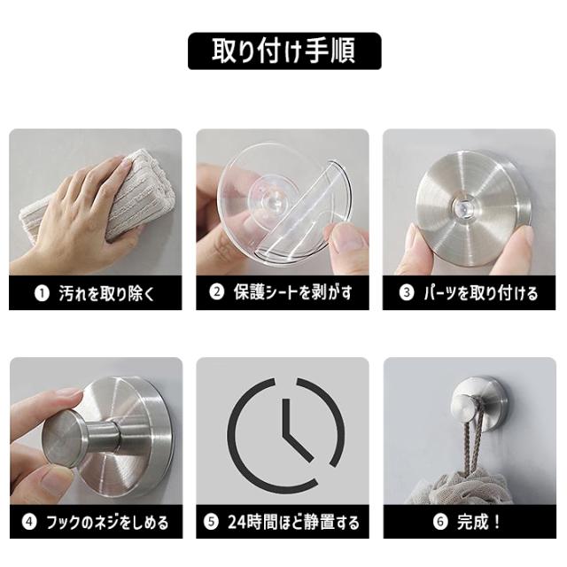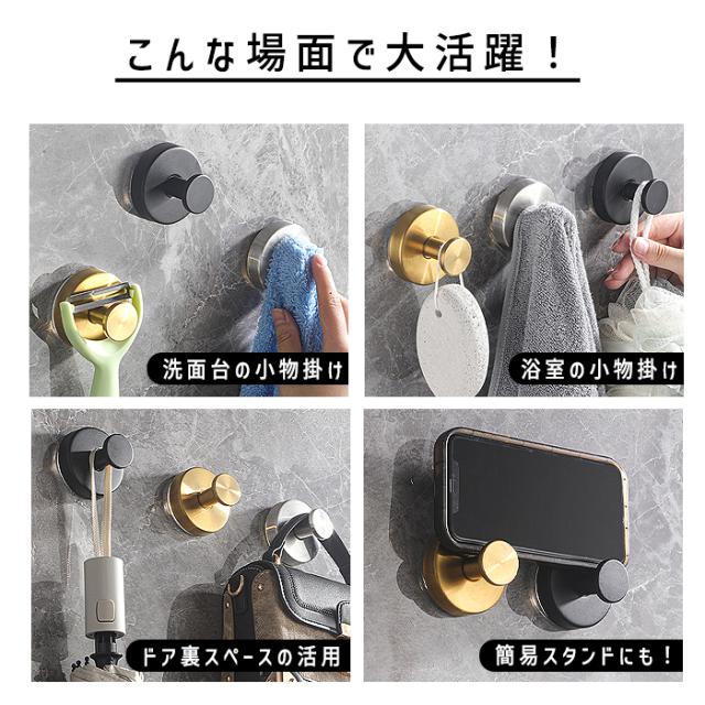 フック 強力吸盤フック ステンレス製 1個 浴室 キッチン キャビネット クローゼット 厚手 長い 壁掛けフック 繰り返し使える 取り付け簡単 穴あけ不要 [郵2]^bm1588^