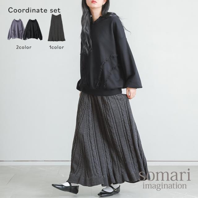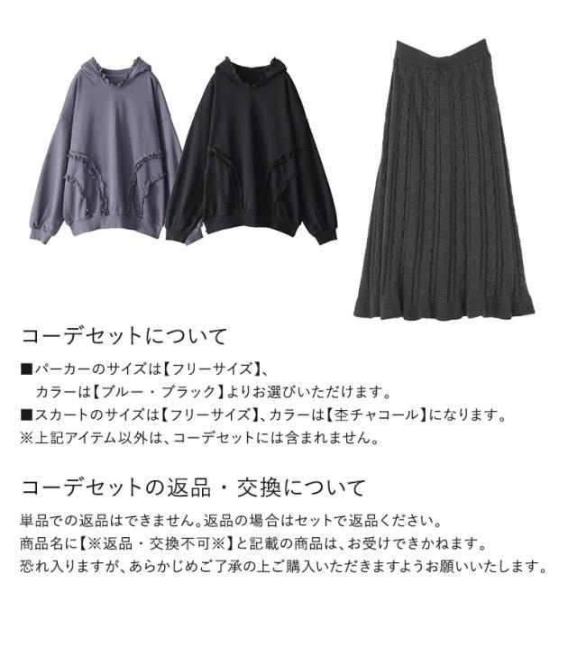 1,000円オフ4日0時迄 【送料無料】『ケーブルニットフレアスカート×テープレーススウェットパーカーコーデ2点SET』【メール便不可】【50】[2点コーデセット 2026 レディース フレアスカート ニット パーカー 長袖 トップス スウェット]