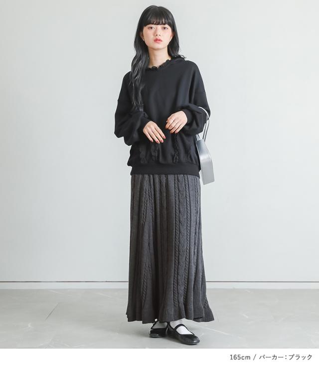 フレアスカート ニット ロング レディース ボトムス ニットスカート ケーブルニット ウエストゴム Aライン フリル 秋 冬 春 ケーブル編み スカート ロングスカート マキシスカート ロング丈 マキシ丈 フレア 無地 おうちで洗える 裏地付き カジュアル シンプル キレカジ フェミニン ガーリー 可愛い系 上品 ベーシック ニュアンス ゆったり ゆる 楽ちん Sサイズ Mサイズ Lサイズ LLサイズ 3Lサイズ XLサイズ フリーサイズ ぽっちゃり 体型カバー 大きいサイズ プラスサイズ 10代 20代 30代 40代 50代 60代 パーカー 長袖 トップス スウェット フード付き フーディー トレーナー テープレース 裏毛 綿混 ぽわん袖 スエット プルオーバー スキッパー ショート丈 ミディ丈 ミドル丈 コットン混 レース ドロップショルダー リブ レイヤード 重ね着 ロングシーズン レトロ クラシカル 伸縮性 低身長 高身長 ブルー 杢チャコール ブラック 202602 2点セット プレゼント 福袋 コーディネートセット コーデセット 中身が見える福袋 上下セット ギフトセット[ID]14cp033