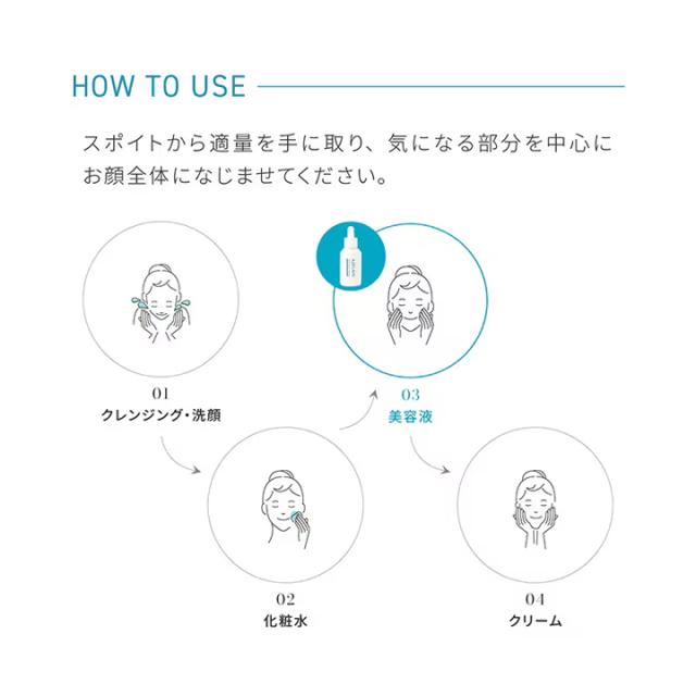 | ご使用方法 | スポイトから適量を手に取り、気になる部分を中心にお顔全体になじませてください。 |