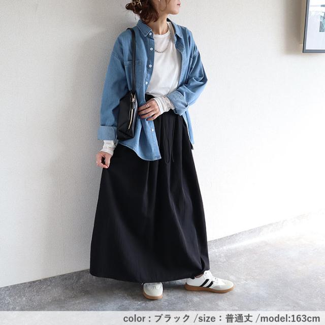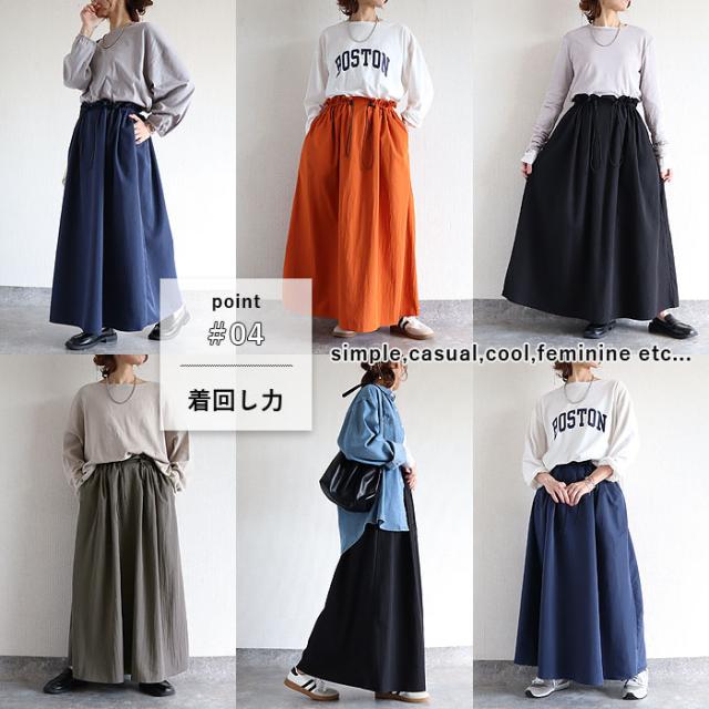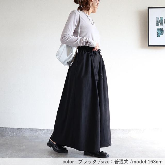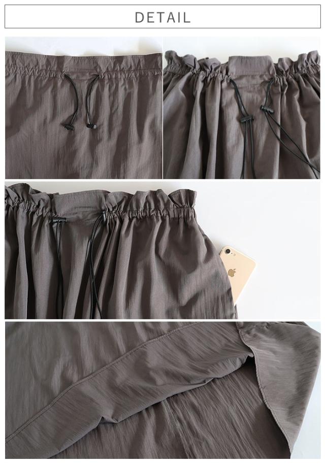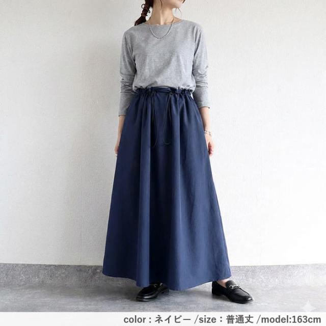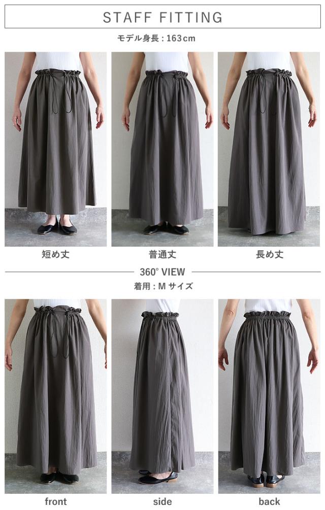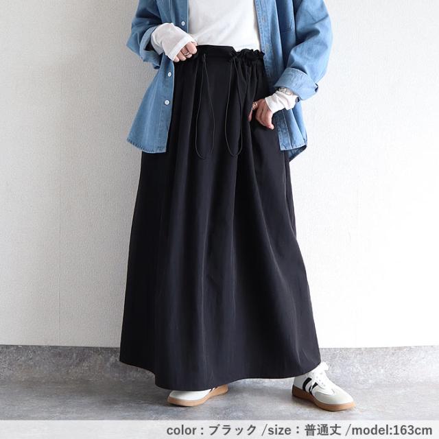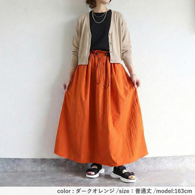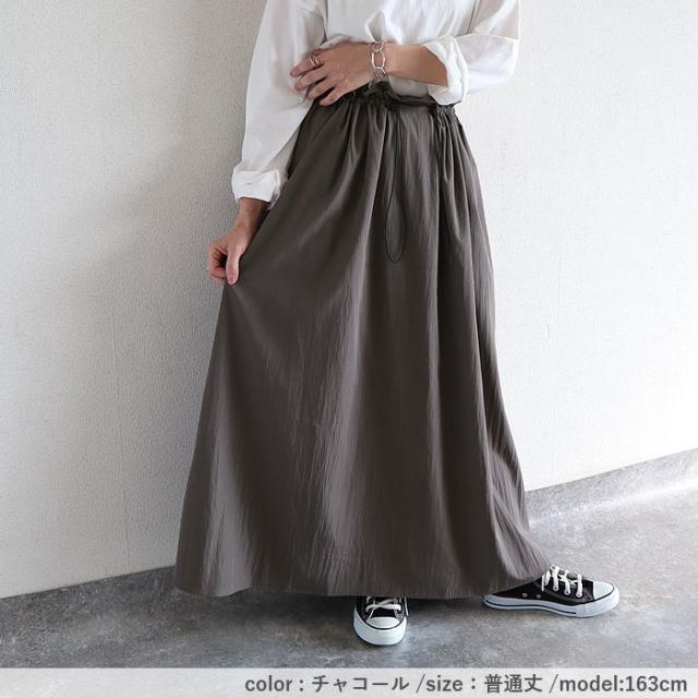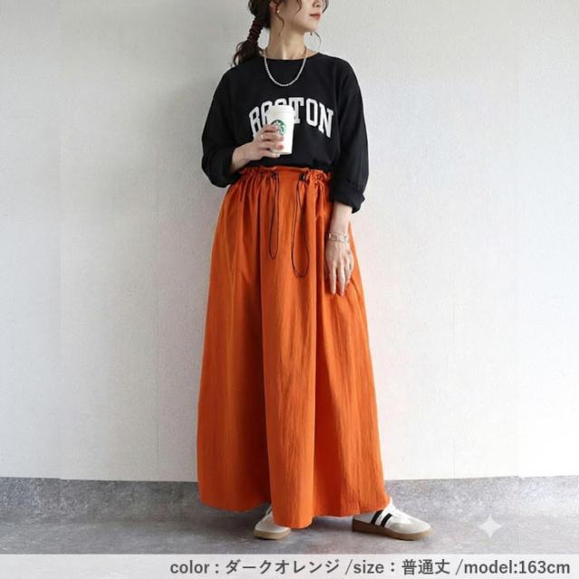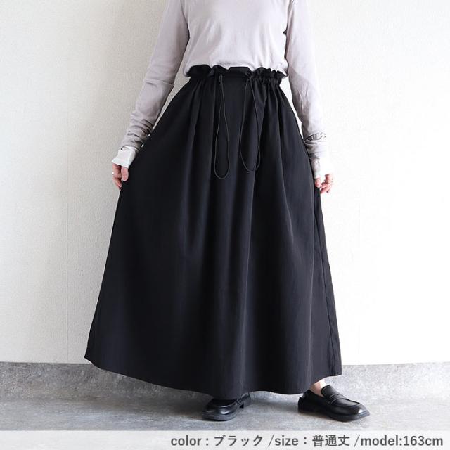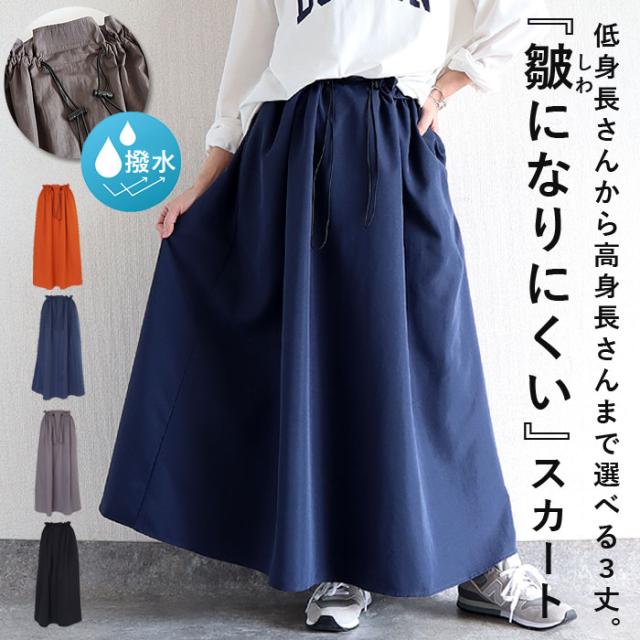 スカート レディース フレアスカート ボトムス 選べる丈 ドローコード おしゃれ ウエストゴム 調節可能 楽ちん シワになりにくい 高身長 低身長 シャリ感 春 夏 [郵2]^b516^