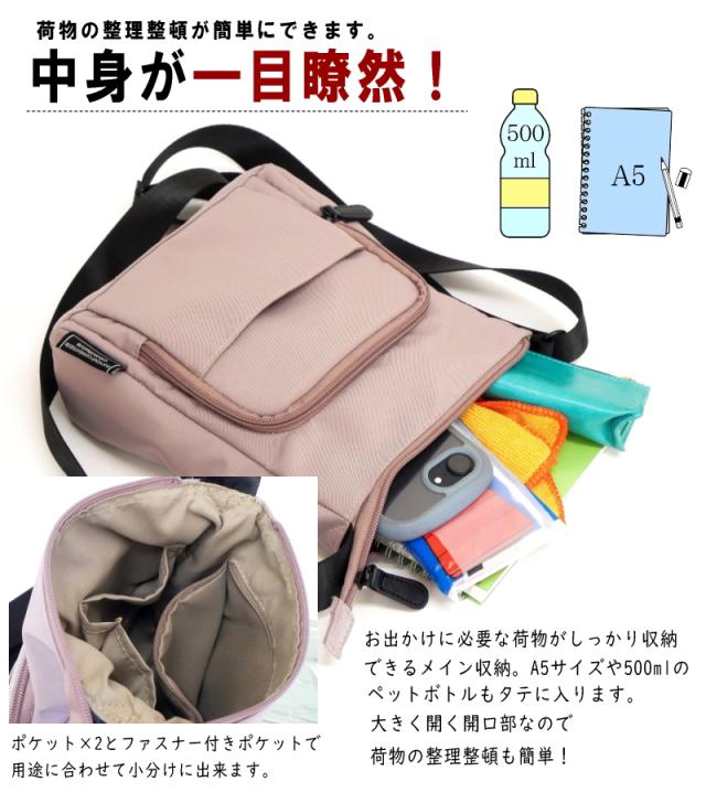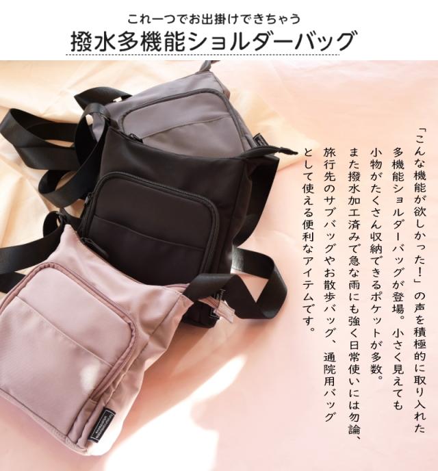 ショルダーバック ミニ レディース 撥水加工 軽量 小さめ 多収納 機能的 マザーズバッグ デイパック 雨の日 旅行 通勤 通院 通年 500mlペットボトル A5用紙