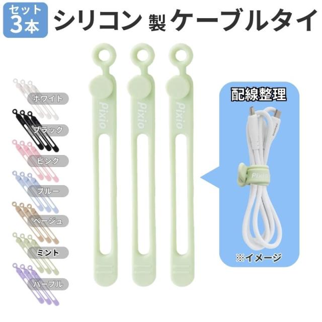 配線整理 シリコンケーブルタイ 3本セット 配線まとめ まとめバンド デスク周り 同色コーデ ケーブル固定 PXSCT3MT ミント 新品 Pixio