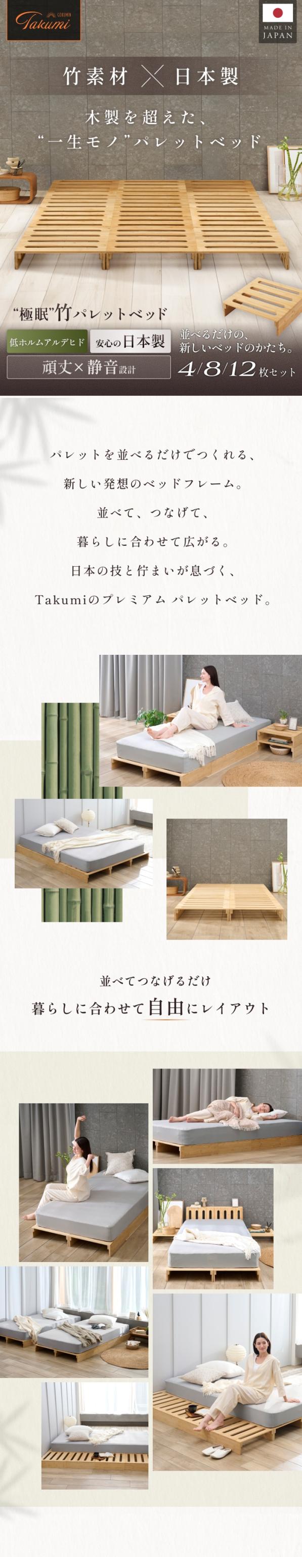 【レイアウト自由 】パレットベッド 竹製 GOKUMIN プレミアム バンブー パレットベッド 12枚 セット すのこベッド ベッドフレーム ローベッド 分割 拡張可能 通気性 天然竹 竹素材 ベッド フレーム シングル セミダブル ダブル クイーン キング ファミリーベッド