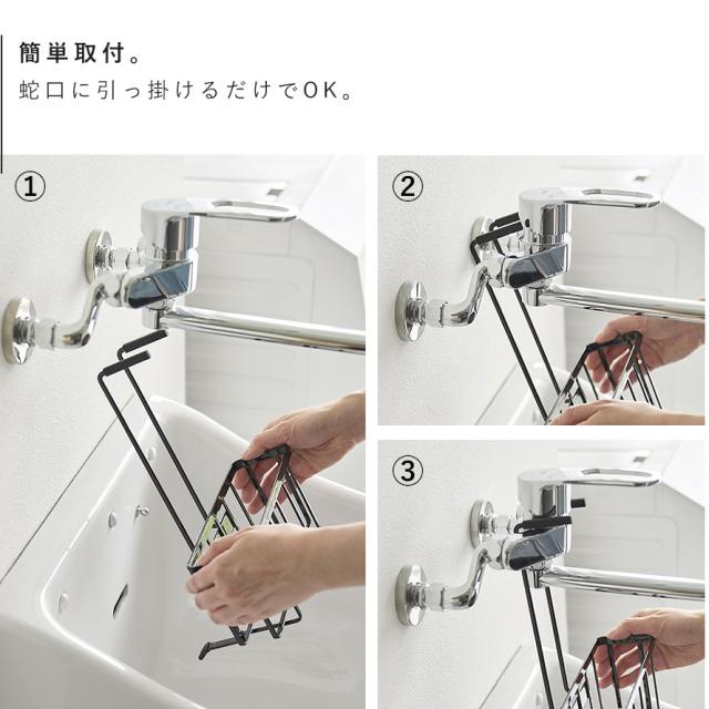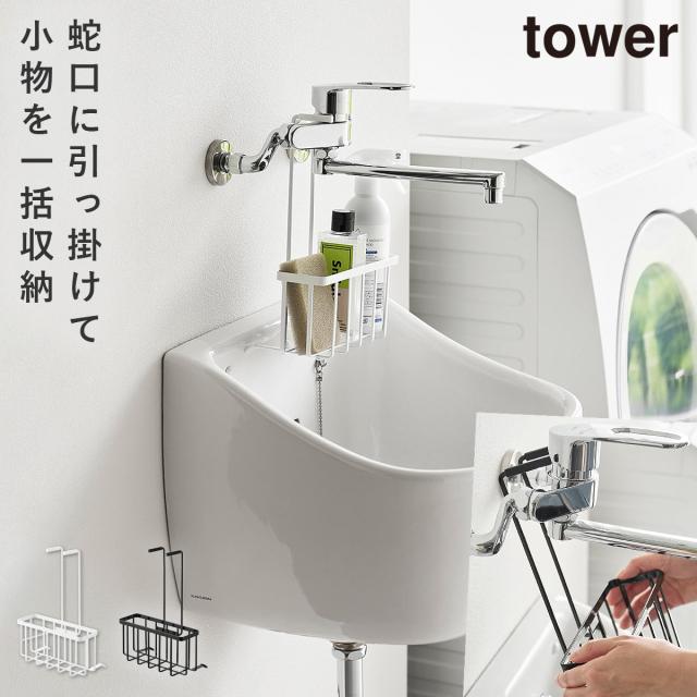 蛇口にひっかける収納ラック タワー 山崎実業 tower 蛇口 スポンジホルダー おしゃれ モノトーン ホワイト ブラック 10310 10311