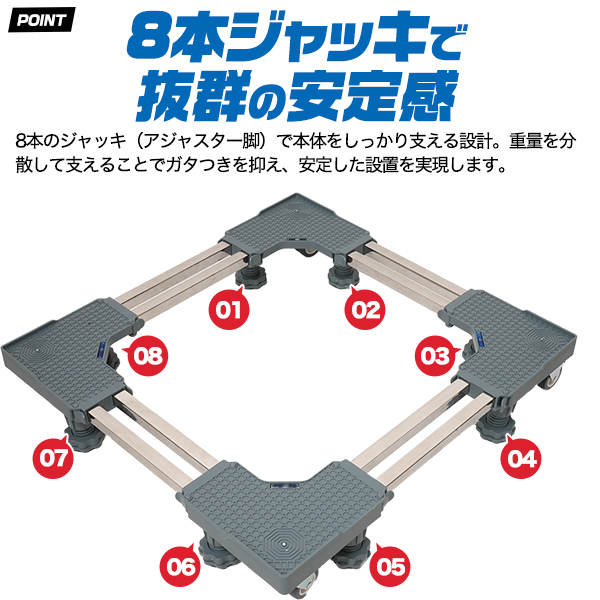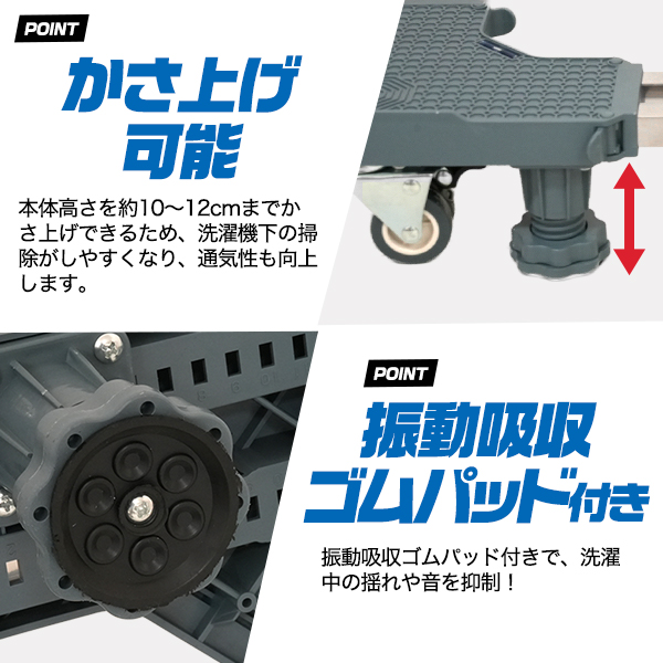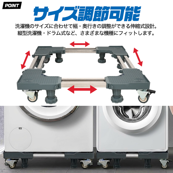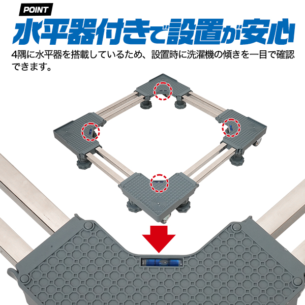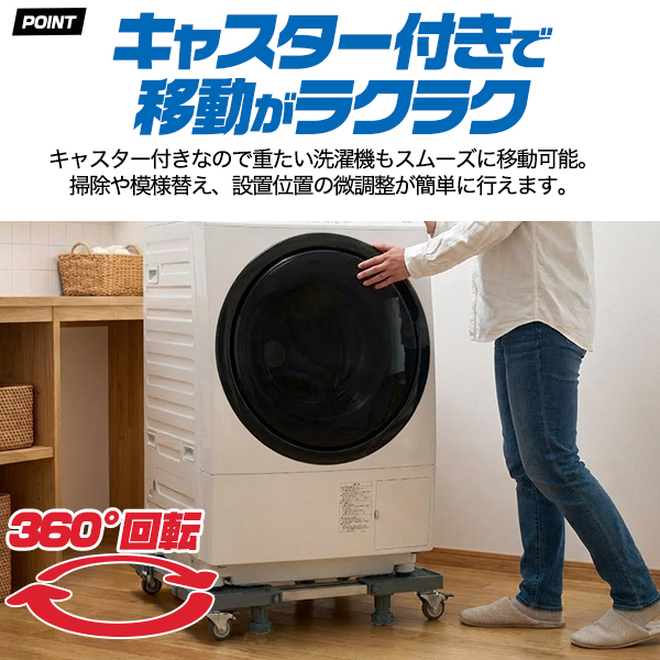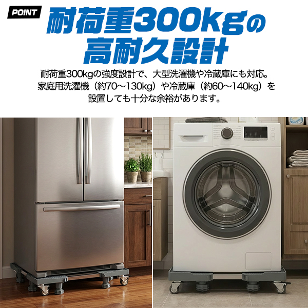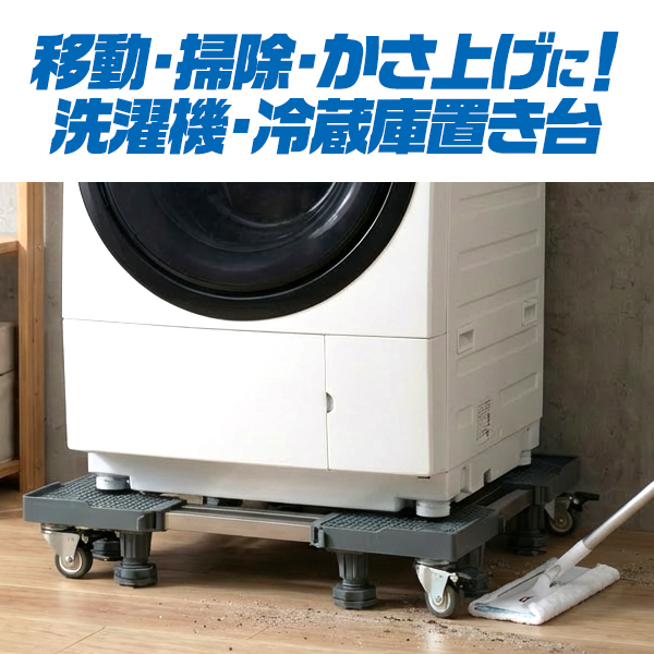 キャスター付き 洗濯機置き台 / 冷蔵庫置き台 耐荷重300kg キャリー 台車 家具 家電 移動 引っ越し 搬入 かさ上げ かさあげ台 運ぶ 模様替え 水平器付き ロック機能付き 送料無料