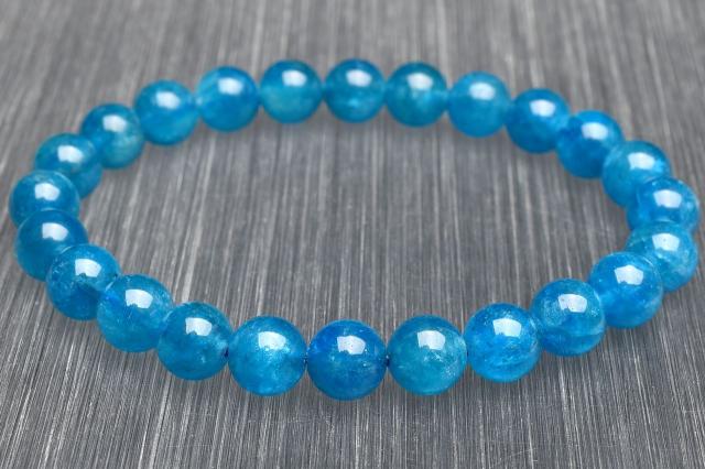 【1点物】ブラジル産◇高発色 ブルーアパタイト 7.5mm ブレスレット 恋愛運_U8864