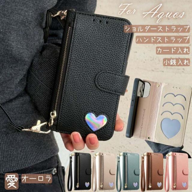 aquos sense10スマホケース 愛 オーロラ ショルダーストラップ aquos sense10スマホケース 手帳型 wish5 aquos wish4 ケース かわいい aquos sense9スマホケース aquos sense10 ケース 手帳型 カバー 小銭入れ付き スマホケース ハンドストラップ付き お財布一体型