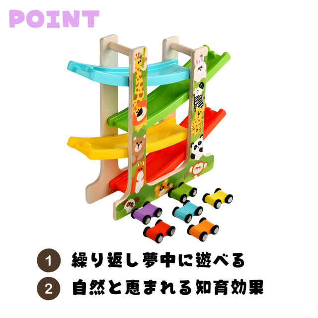 スロープトイ 木のおもちゃ カースライダー 知育玩具 おもちゃ 玩具 木製 トレーニング 誕生日 アニマル柄 動物 車 クルマ 男の子 女の子 室内 子供 ベビー 遊び 入園祝い 3歳 幼稚園