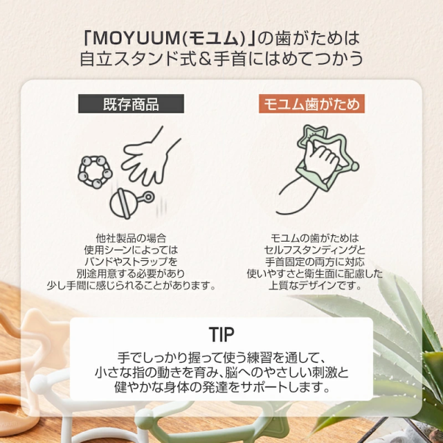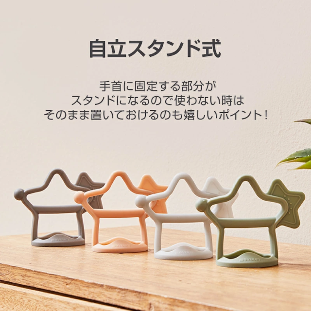 moYUUM モユム 【シリコーン 星型歯がため】 手首にはめるだけ 安心プレミアムシリコーン製 自立スタンド式 歯固め はがため 歯がため ファーストトイ カミカミ星 指しゃぶり おしゃぶり ムズムズ感解消 のど突き防止設計