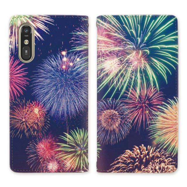 らくらくスマートフォン Lite FCG03 / MR01 / a A401FC ベルトなし 手帳型スマホケース 花火夏の寺デザイン マグネットでピタッと閉じる スタンド スマホケース スマホカバー 手帳ケース 手帳カバー
