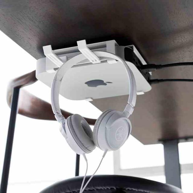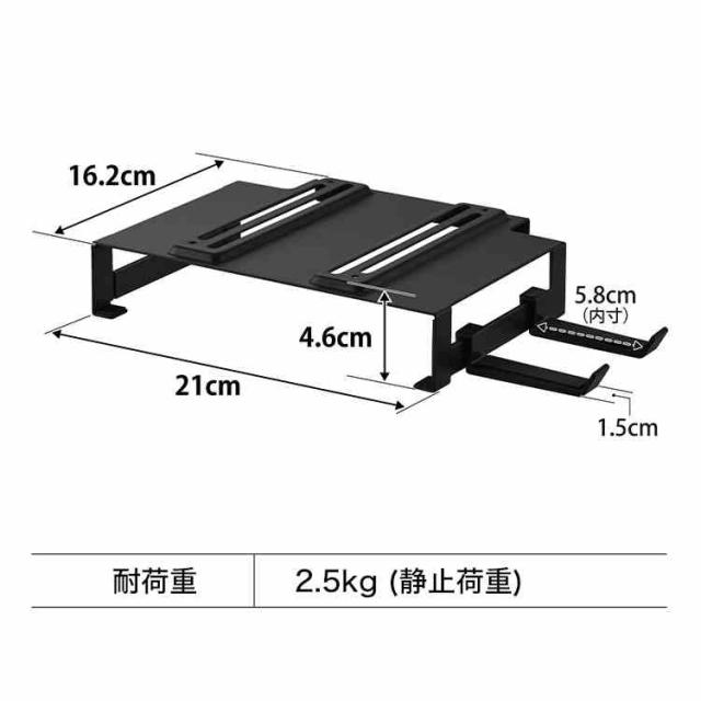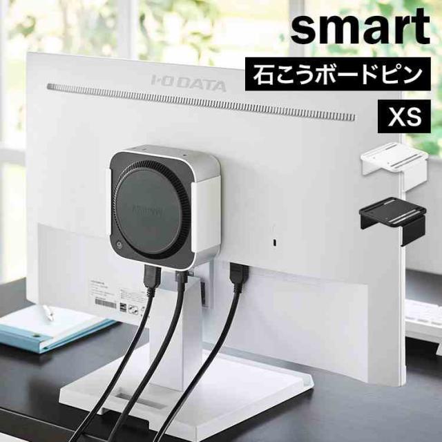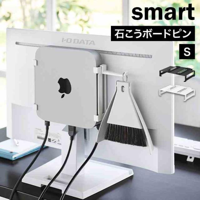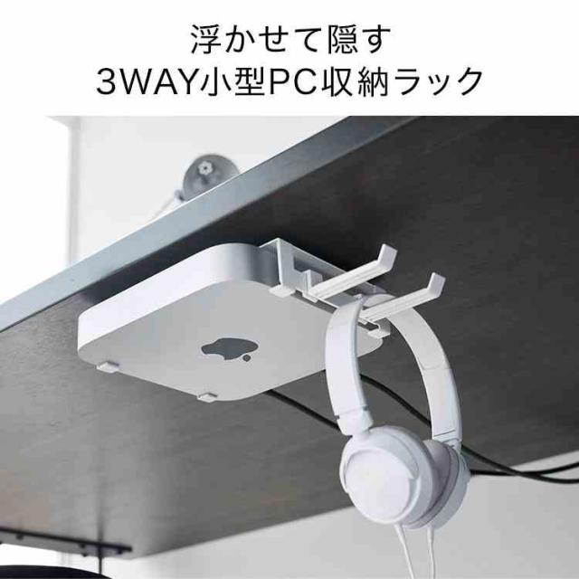山崎実業 スリーウェイ小型PC収納ラック S smart スマート 10420 10421 ホワイト ブラック 公式 Sサイズ 小型PCラック Mac mini M2 ホルダー 3way 収納ラック モニター裏 壁面収納 壁掛け 石こうボード ピン デスク下 隠す収納 浮かせる収納 白 黒 フック付き