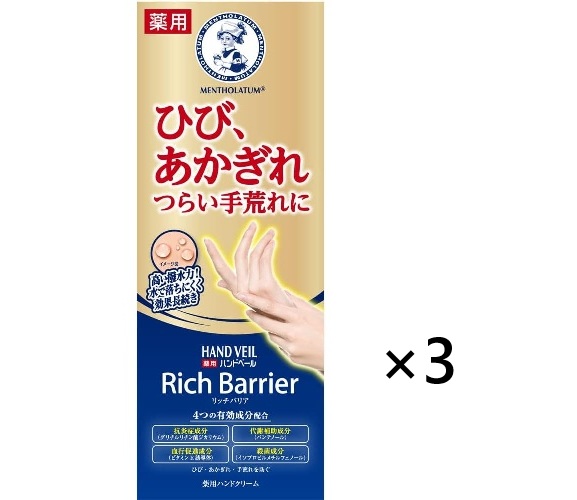 3個 セット ロート製薬 メンソレータム ハンドベール リッチバリア 70g 薬用 ハンドクリーム ひび あかぎれ 手荒れ 対策 無香料 高密着 バリア 処方 【医薬部外品】 送料無料