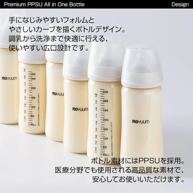 moYUUM モユム 【オールインワン PPSU 哺乳瓶】シリコーン 哺乳瓶 ほ乳瓶 80ml 170ml 270ml 食洗器可 出産ギフト BPA・BPF・BPS・EAフリー プレミアム哺乳びん ベビーボトル 新生児 出産祝い 哺乳びん プラスチック育児グッズ 赤ちゃん用品
