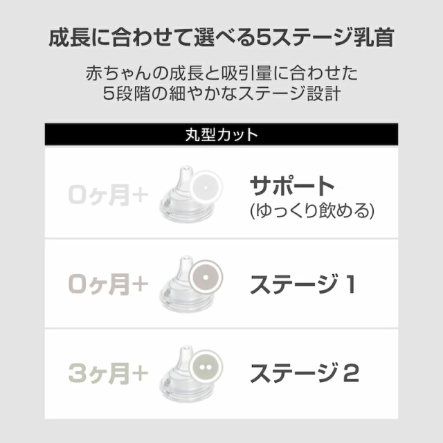 ・170ml:ニップル ステージ1(丸穴)