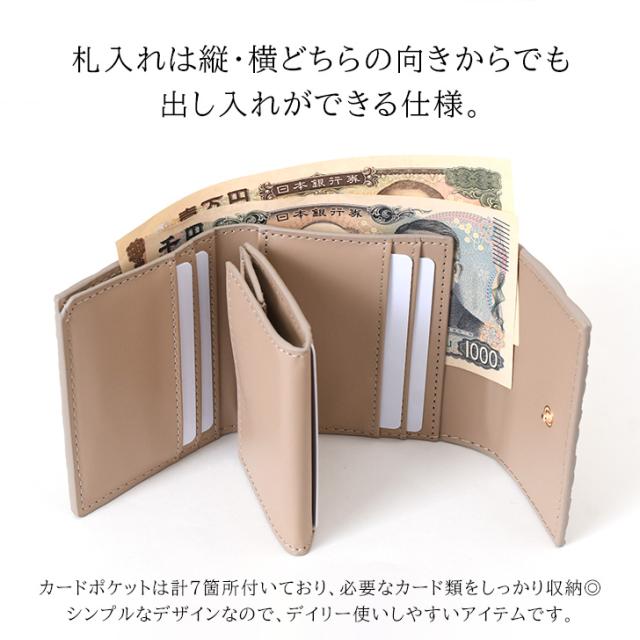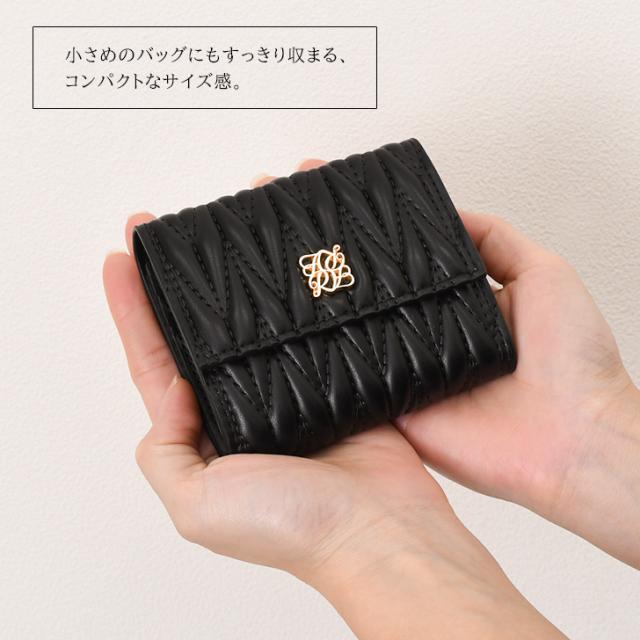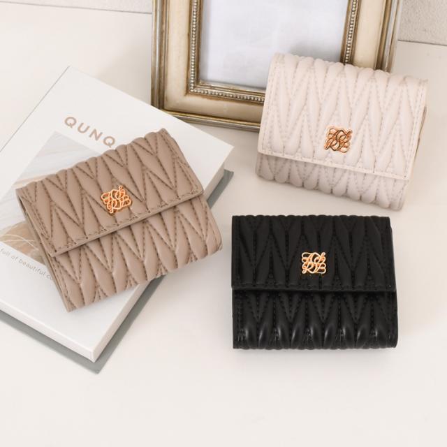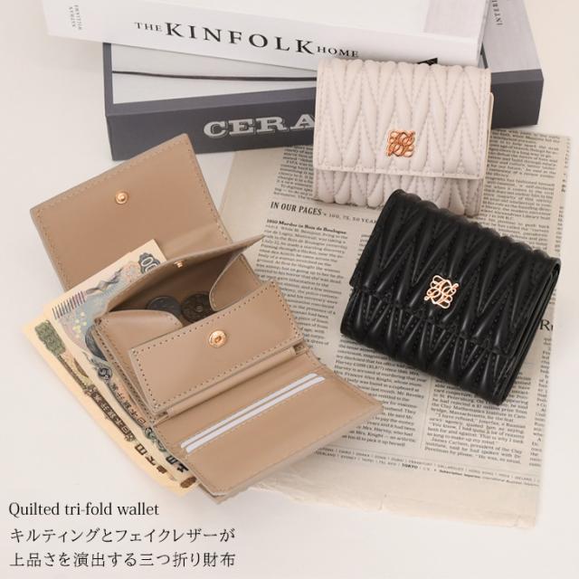 キルティングとフェイクレザーが上品さを演出する三つ折り財布