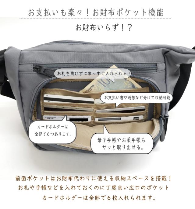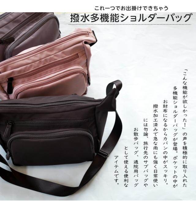 ショルダーバック 男女兼用 撥水加工 軽量 小さめ お財布ポケット 多収納 機能的 マザーズバッグ デイパック 雨の日 旅行 通勤 通年 通院 500mlペットボトル
