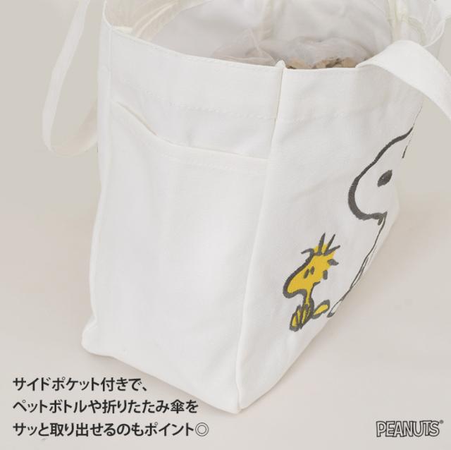 新作 スヌーピー★刺繍入りキャンバストートバッグ レディース 軽量 小さめ マチ広 b5 帆布 snoopy キャラクター グッズ ランチバッグ 肩掛け 手提げ ポケット付き かわいい おしゃれ 通勤 通学 デイリー