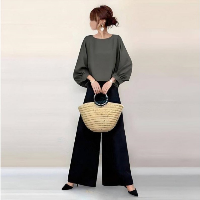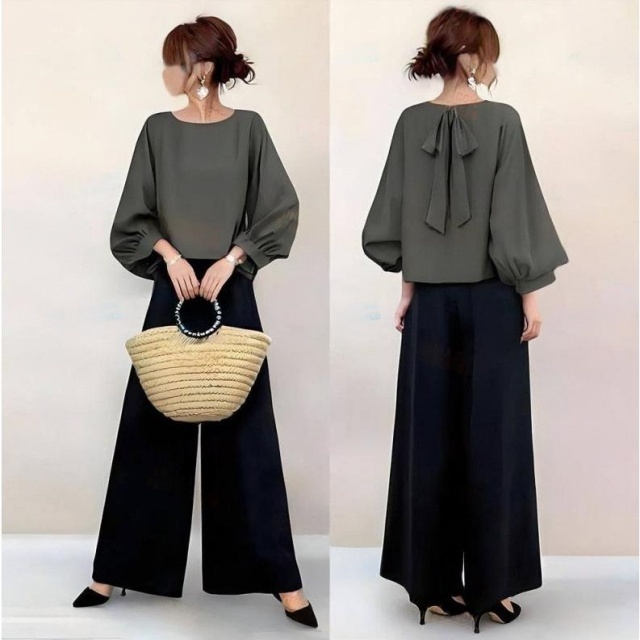 デイリー お洒落 ファッション お出かけコーデ セット アジアンストア asian-store miraikin レディースセット Tシャツ ブラウス パンツ 秋セット 大人エレガント 大人おしゃれ きれいめ オフィスカジュアル