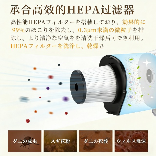 掃除機 コードレス スティック型 ハンディクリーナー 強力吸引 15000pa HEPAフィルター 水洗い可能 ペット 布団 ダニ 花粉 ほこり 家用 車内 狭い隙間 軽量 コンパクト 充電式 おすすめ