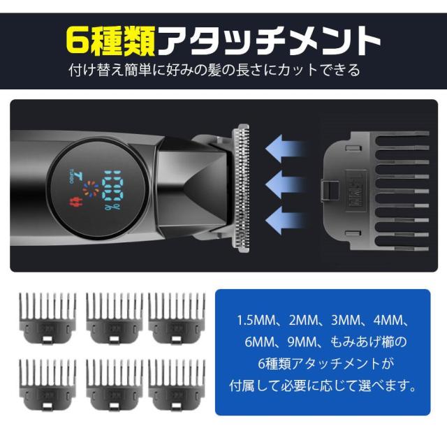 電気バリカン バリカン 散髪 充電式 プロ仕様 防水 セルフカット 2段階調整 メンズ 業務用 家庭用 大人 子ども ヘアトリマー USB充電