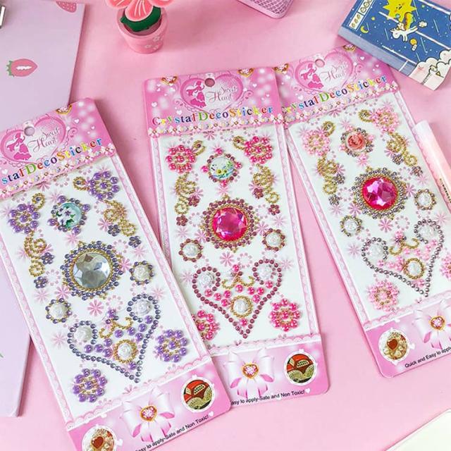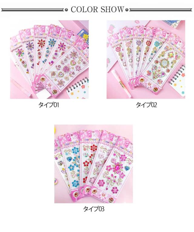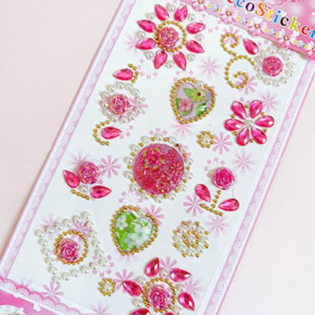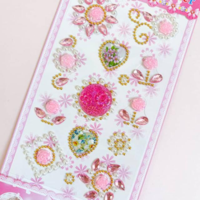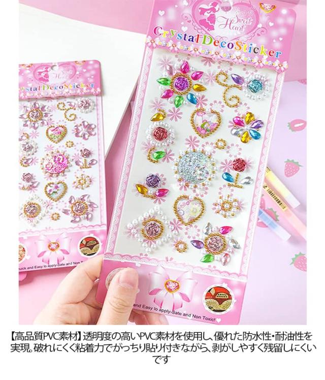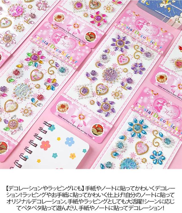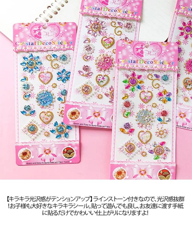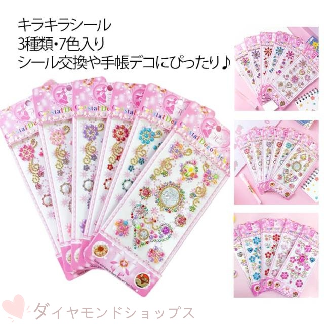 キラキラシール ごほうびシール デコシール 女の子 7枚入り キラキラ シール手帳 3種類 ハート ラインストーン ステッカー スケジュール帳 貼り付け可能 カラフル 日記帳 アルバム スマホケース デコレーション ラッピング プレゼント