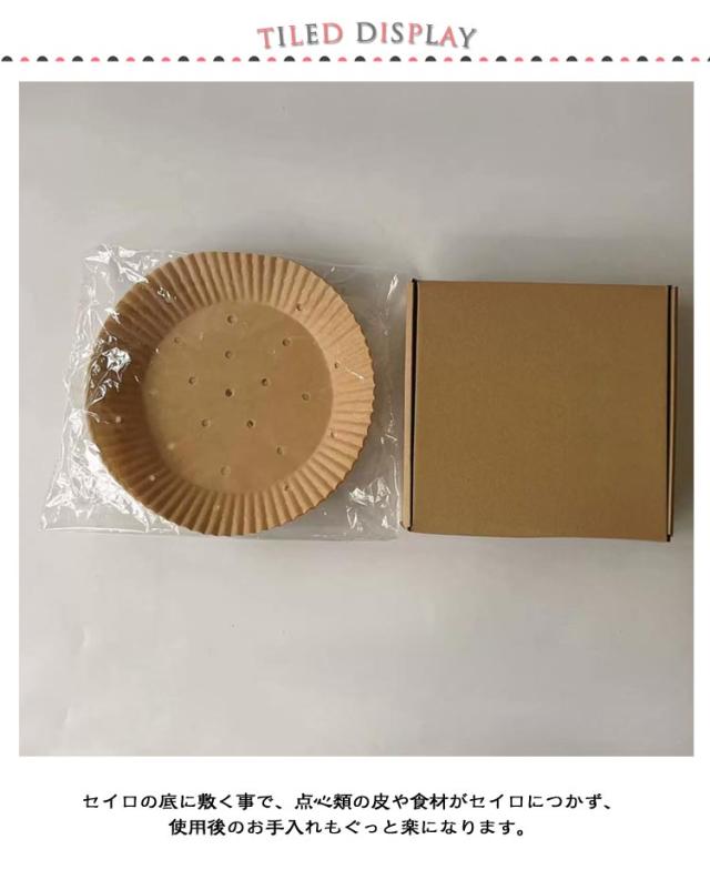 | せいろ専用タルト型蒸篭紙100枚セット。 セイロの底に敷く事で、点心類の皮や食材がセイロにつかず、使用後のお手入れもぐっと楽になります。 蒸気の通る穴があるから蒸気を均一に通過させ、食品を蒸す効率よく蒸せます。 餃子、饅頭、中華饅頭、シュウマイ、豚まん、肉まん、焼売、小龍包などに ♪ 食品級純木パルプ材質を採用しており、蛍光剤はなくて、直接食べ物と接触できますので、安全に安心してご使用いただけます。 食材をせいろに載せ、蓋をして湯気で蒸すだけで、誰でも手軽にヘルシーで美味しい料理を楽しめます。 | |