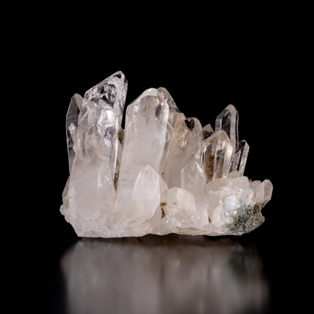 ・多様な表情: 緑色のクローライト(緑泥石)、黒色のアナテース(鋭錐石)、金色のルチル(金紅石)などが含まれる、個性豊かな結晶が見られます。