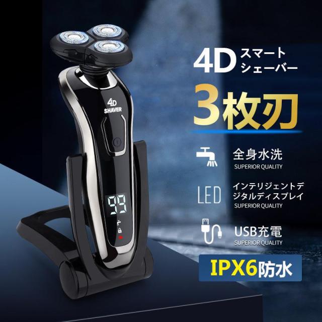 シェーバー メンズシェーバー 髭剃り 3枚刃 IPX6防水 電動シェーバー 乾湿両用 USB充電式 LED電池残量表示 男性用 プレゼント