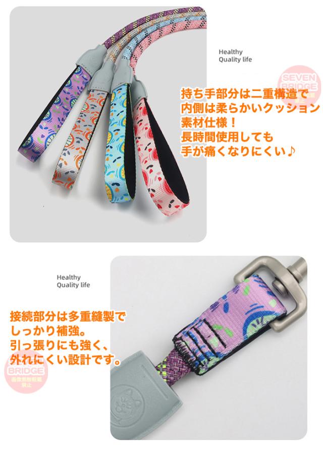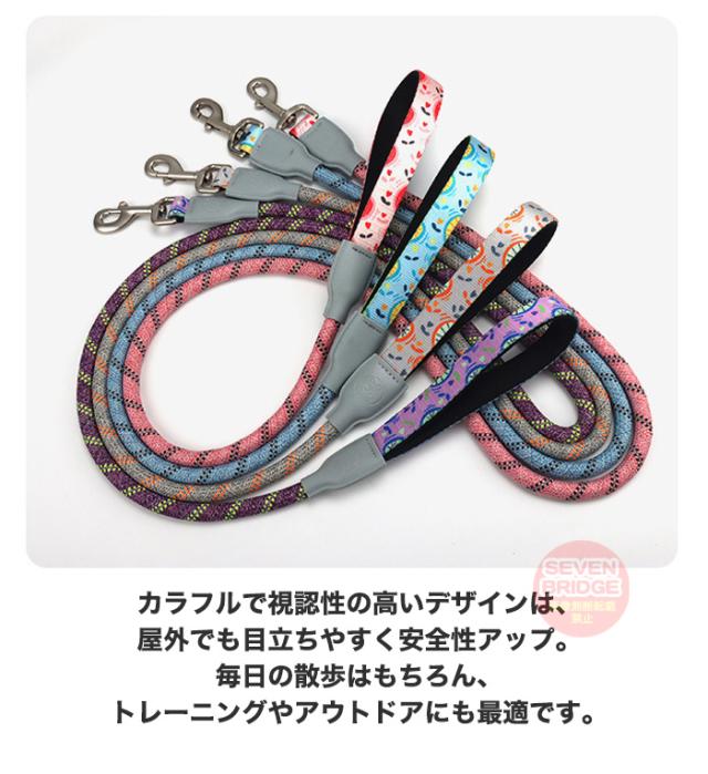 犬 リード 編み込み構造 高強度 丈夫 カラフル 柔らかいクッション持ち手 光反射 ロープ 小型犬 中型犬 大型犬 h0641
