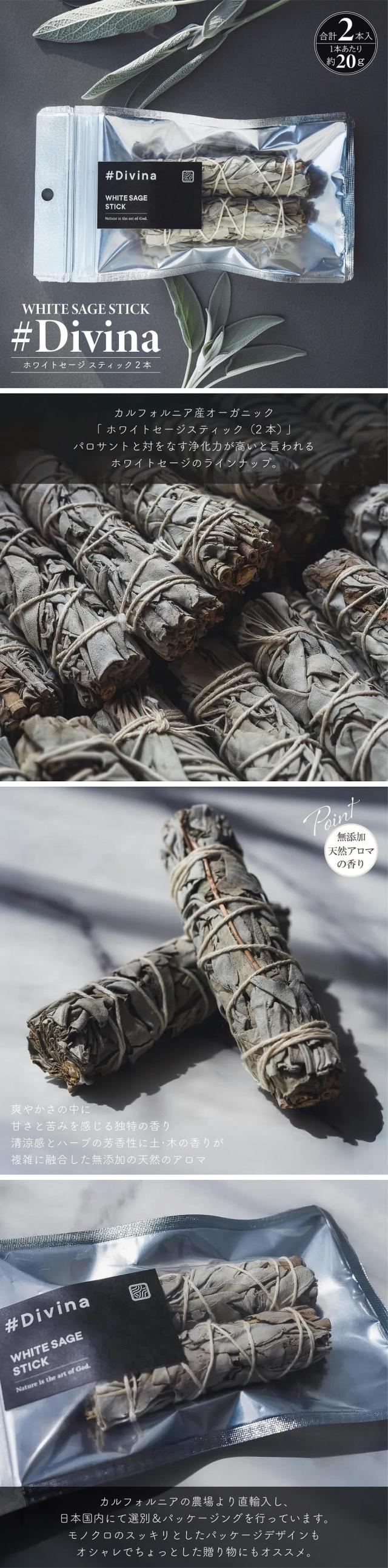 アロマ お香 ディヴィーナ ホワイトセージ スティック 2本 約40g カリフォルニア原産 無農薬 国内選別 オーガニック インセンス フレグランス ヒーリング 浄化 リラックス ルームフレグランス 芳香剤 父の日 ギフト おしゃれ インテリア