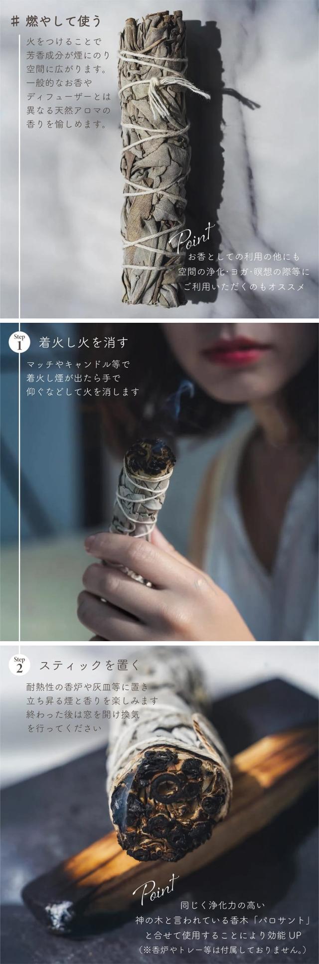 | 素 材 | カルフォルニア産オーガニックホワイトセージ |